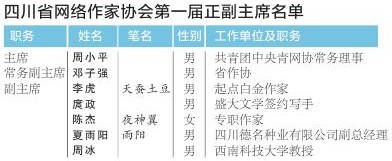 四川省网络作家协会成立于2015年6月10日,首批入会网络作家165人。