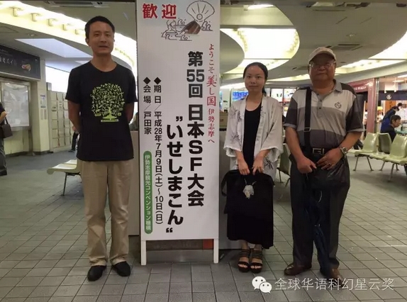 董仁威(右一)与程婧波(右二)、丁丁虫(左一)在日本SF大会
