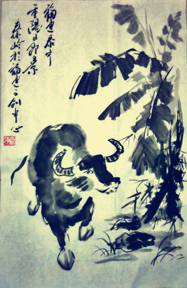 (下面这幅芭蕉和水牛,去岁画于福建泰宁文艺创作中心,亦存此)