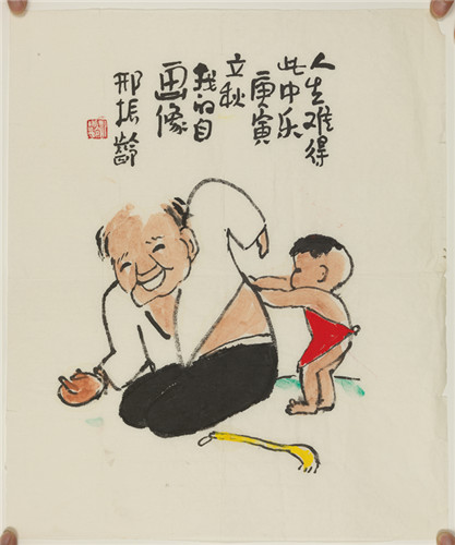 去岁(壬辰)秋月,邢老振龄寄赠《人间情味》水墨画集,画集扉页有手绘的两盆黄菊,并有两句题画诗∶“生不逢时(辰)靠自强,深秋时节成花王。”这两句诗,既是喻物,又是喻人。这里所喻之人,不是别人,我看很像是画家自己。何以见得?请看他在画集中的“自报家门”:“1933年我出生在山东乳山一个农民家中.从小爱写爱画,晴耕雨读。1949年来北京,因家中贫寒,无条件就读美术院校,便在勤工俭学之余,自学搞些版画和泥塑,版画作品多次参加全国美展,有的曾获奖和被收藏,并被选为版画家协会常务理事,只可惜事未理成,就沦为左派的反面了。”左派的反面是什么?是右派,当上了右派,且不说受批挨整,岁月蹉跎不知要荒废多少,岂不是“生不逢辰”?至于“靠自强”,再看他的简历∶“1993年退休,我暗自下决心,要把失去的岁月追回来。于是我拿起画笔,晨起舞墨早,夜读掩卷迟,十指成茧,废稿成堆。”也就是说,他重提画笔是在六十退休以后。退休前是自学,退休后靠自强。正像初中生孙女邢易,在《人间情味》序中所记∶“爷爷的画一幅又一幅,一本画集又一本画集(至此己是第29本),他手中的笔就像是魔杖,画什么有什么。作家汪曾祺爷爷说我爷爷是′天生一双丹青手’,我却认为爷爷不是天生的,而是后天努力的,因为我总是看他不闲着……他总是′晨起舞墨夜读书’,我早起上学,常常见他画室的灯亮着,刚刚画好的画贴在墙上,他在画前端详着,好像他就是画中的人。”小孙女的这段话,活生生勾勒出他眼中的爷爷,是一位年逾古稀,刻苦勤奋、自强不息的爷爷。