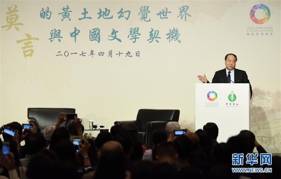 4月19日,“莫言的黄土地幻觉世界与中国文学契机”讲座在香港会展中心举行。 新华社发(王申 摄)
