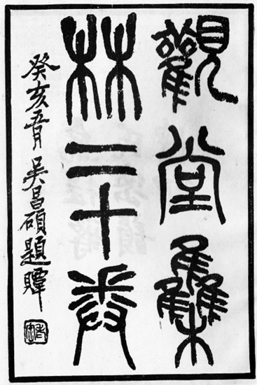 “蒋本”的印制没有采取普通的石印法,而是选用了当时极为考究的“聚珍仿宋版”铅活字印制,这是由西泠印社创始人之一丁辅之(1879-1949)精心研制出来的一种印刷字体。这种字体精雅端庄,是从宋版书的字体演变而来,再经由名师仿写、刻模;使用这种字体印制出来的线装书籍,颇为古雅悦目。该书扉页题笺由著名画家吴昌硕用篆书写成,苍劲古朴,更显古雅精致。