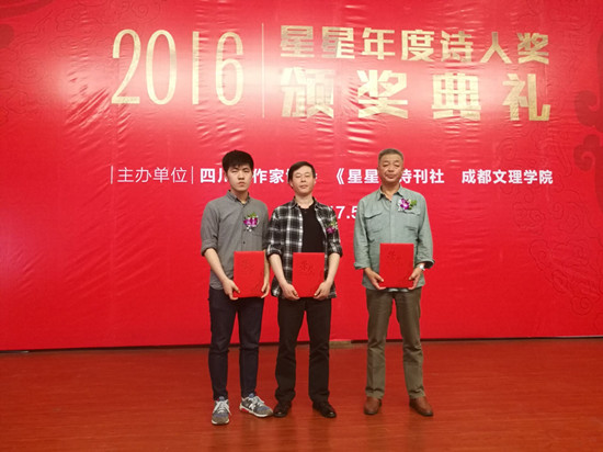 5月8日,由四川省作家协会、《星星》诗刊社、成都文理学院主办的“2016·星星年度诗人、诗歌评论家奖”颁奖典礼在成都举行。哑石、燎原、蔌弦分别获得“年度诗人奖”、“年度诗歌评论家奖”和“年度大学生诗人奖”。