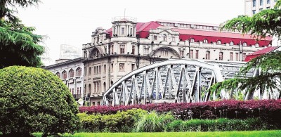①外白渡桥北岸的浦江饭店(1959年更名),即是旧日的礼查饭店。(本报记者袁婧摄)