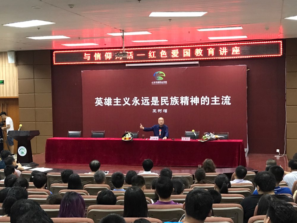 为隆重纪念中国人民解放军建军90周年和全面抗战爆发80周年,迎接党的十九大胜利召开,并以此为契机进一步贯彻全国及全省高校思想政治工作会议精神,推动开展“两学一做”学习教育,6月22日,山东传媒职业学院邀请国家一级作家、政府特殊津贴享受者、全军艺术委员会委员王树增少将到校做了题为“英雄主义永远是民族精神的主流”的报告会。