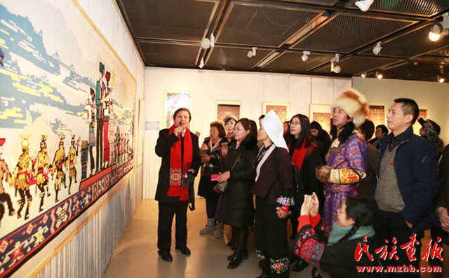 2018年1月11日,中国妇女儿童博物馆展出的“西兰卡普——中国土家族织锦文化展”迎来了42位特别的观众,他们是鲁迅文学院第30期少数民族文学创作培训班的学员。参展前举行了座谈会,中国民族博物馆党委副书记、副馆长张志文,中国妇女儿童博物馆副馆长刘华彬,鲁迅文学院副院长邢春等嘉宾与会。