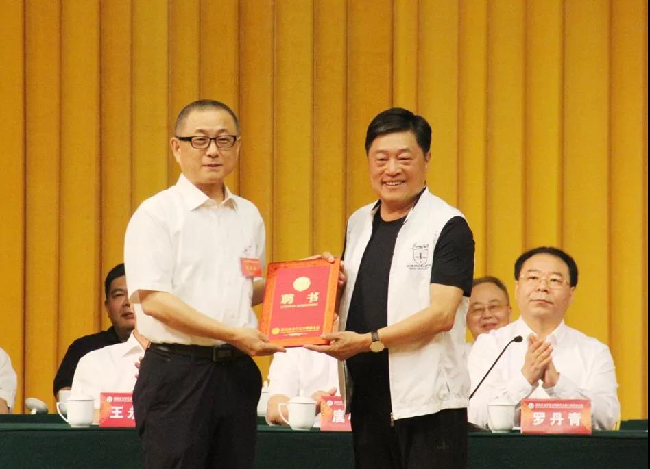 新任湖北省文联主席刘醒龙向“老”主席熊召政颁发“名誉主席”聘书 中国艺术报记者张悦 摄