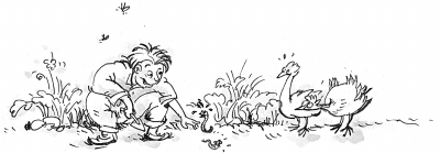 早春时节,有时一早上能捉十几二十条土蚕,用桐叶包来往鸡群里一扔,鸡们抢着争着啄,每每打斗好一阵子。李锤/画 选自《日子疯长》