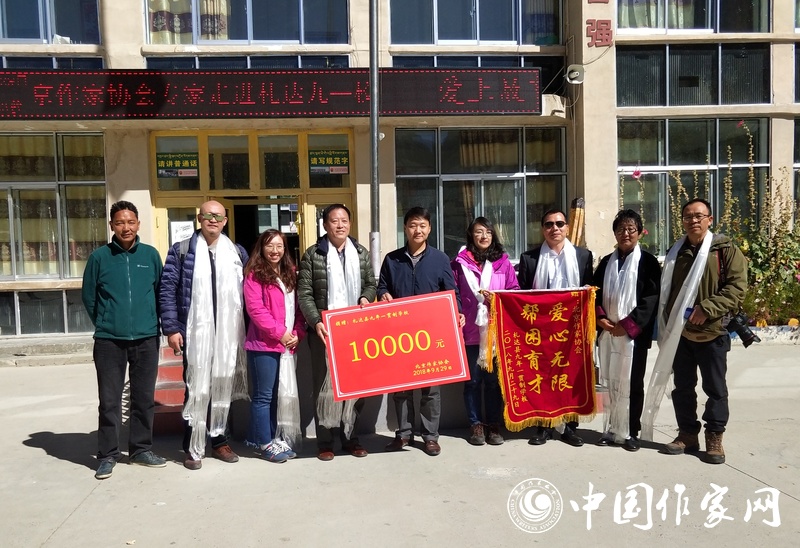 北京作家们为札达县九一学校捐款一万元并获赠锦旗