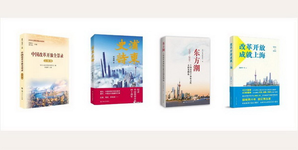 在记录、总结改革开放40年伟大历程和历史经验和书写浦东开发开放28年历史变迁题材方面,出版了《中国改革开放全景录·上海卷》、《新的伟大革命——中国改革开放四十年》《浦东史诗》《东方潮——上海改革开放标志性首创案例选》《改革开放成就上海》《破冰:上海土地批租试点亲历者说》《改革中国--16位中外学者谈中国改革开放40周年》等著作。