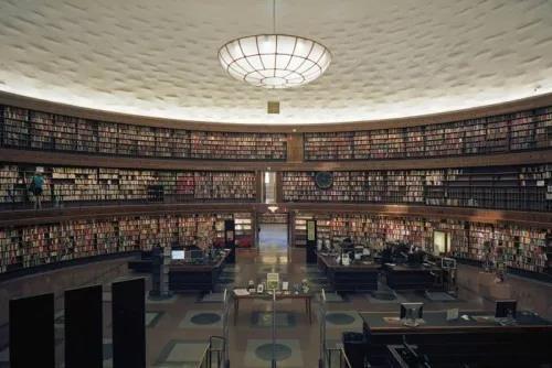 瑞典斯德哥尔摩公共图书馆。1924年正式建立。是瑞典最早使用开放式书架的公共图书馆。