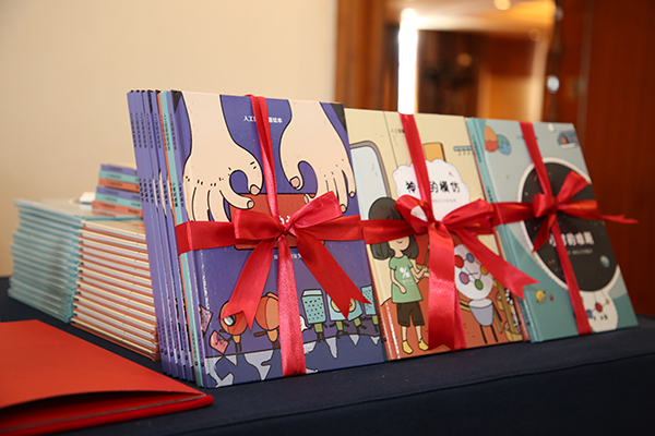 活动最后,上海市教委教材语管处、上海教育出版社领导向志达书店、参与活动的学生们赠送了最新出版的人工智能科普绘本。