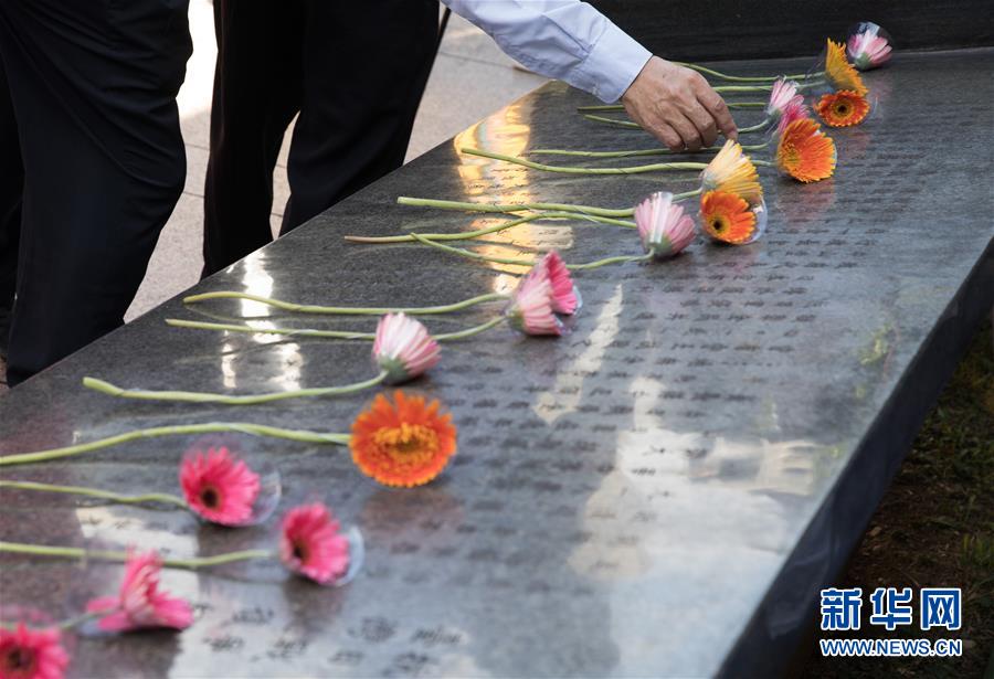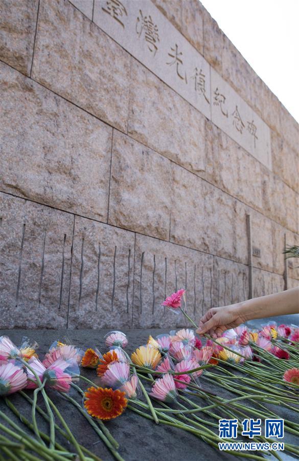 10月25日,台湾各界人士在台北中山堂“抗日战争胜利暨台湾光复纪念碑”前共同缅怀抗日先烈。新华社记者 金立旺 摄