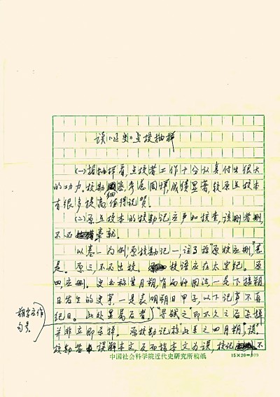 看到过去的档案和照片,我感慨特别深。外边档案展览的第一件就是我提供的——吴晗起草的、以范老和吴晗名义写给毛主席的关于标点二十四史的报告。当时开这个会,传达主席指示之后,范老召集几个历史所的同志研究,要我做记录。我把记录整理之后,送给吴晗,他修改了两句,然后送给主席,还附了一封信。后来接到主席回信,明确了任务。会上的情况,我现在还记得一些,范老怎么发言,吴晗怎么发言,我都还记得。但是现在参加这个会的,只剩下我这个做记录的人了,都不在了。