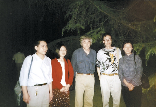 苇岸生前与文学界朋友合影(左起:宁肯、杜丽、芒克、苇岸、冯秋子)。