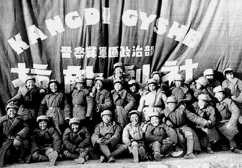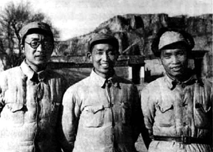 郑红羽与彭长登、毕革飞合影(1948年摄于太原前线)