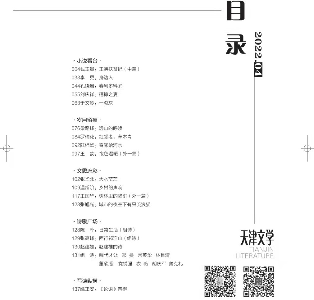 2021年第41期“本周之星”双鱼的作品《沂蒙旧事》和第42期“本周之星”泥文的作品《与夜空对坐(组诗)》发表在《天津文学》2022年第2期。