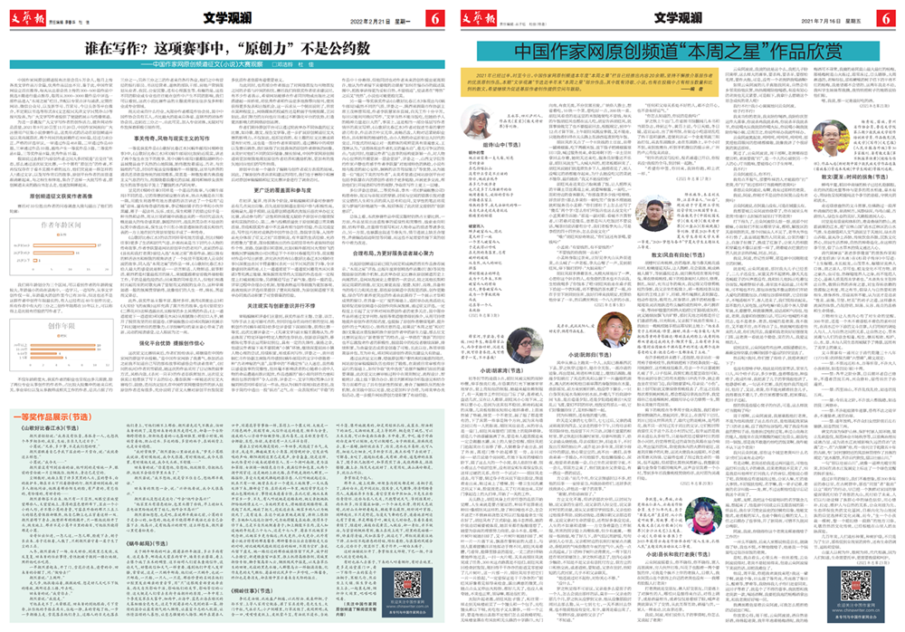 中国作家网在与《文艺报》合办《文学观澜》专刊推出原创频道内容专版。