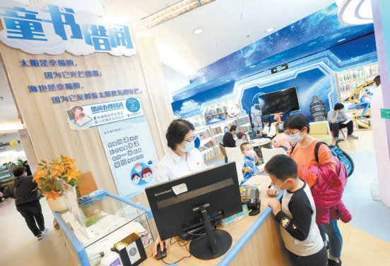 在北京图书大厦少儿借阅区,小读者们正在借阅、阅读图书。