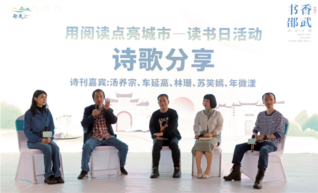 “书香邵武·用阅读点亮城市”世界读书日活动在福建省邵武市举行。邵武市领导夏礼平、蔡忠明、叶永青、龚建春、邹日娥、张晟、罗群荣,福建省作家协会副主席、鲁迅文学奖获得者汤养宗,福建省阅读学会副会长、作家施晓宇,诗人、鲁迅文学奖获得者车延高,青年诗人林珊、年微漾、苏笑嫣,以及当地读书爱好者300余人参加活动。