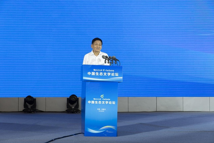 为深入学习贯彻习近平生态文明思想和全国生态环境保护大会精神,培育和弘扬生态文化,8月30日,2023年中国生态文学论坛在内蒙古自治区鄂尔多斯市举办。本次论坛由生态环境部、中国作家协会、内蒙古自治区人民政府共同举办。生态环境部党组成员、副部长郭芳,中国作家协会书记处书记邱华栋,内蒙古自治区政协副主席安润生出席论坛并讲话。