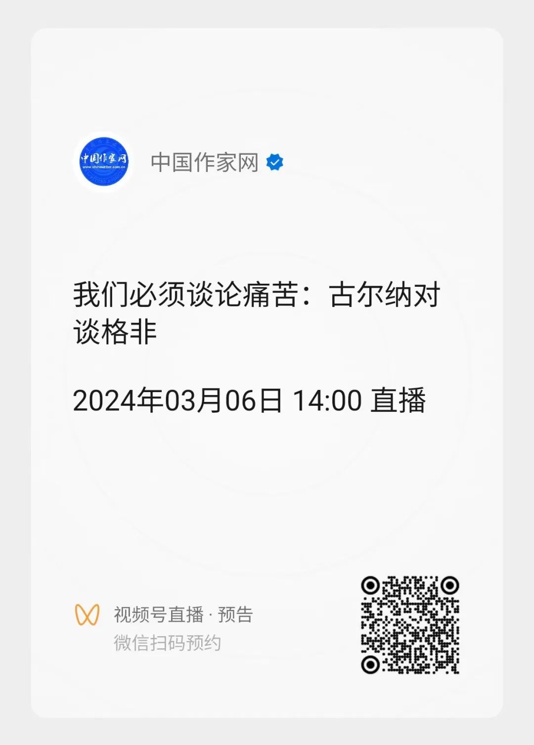 (2)抽取二十位幸运观众,送出古尔纳或格非签名的著作