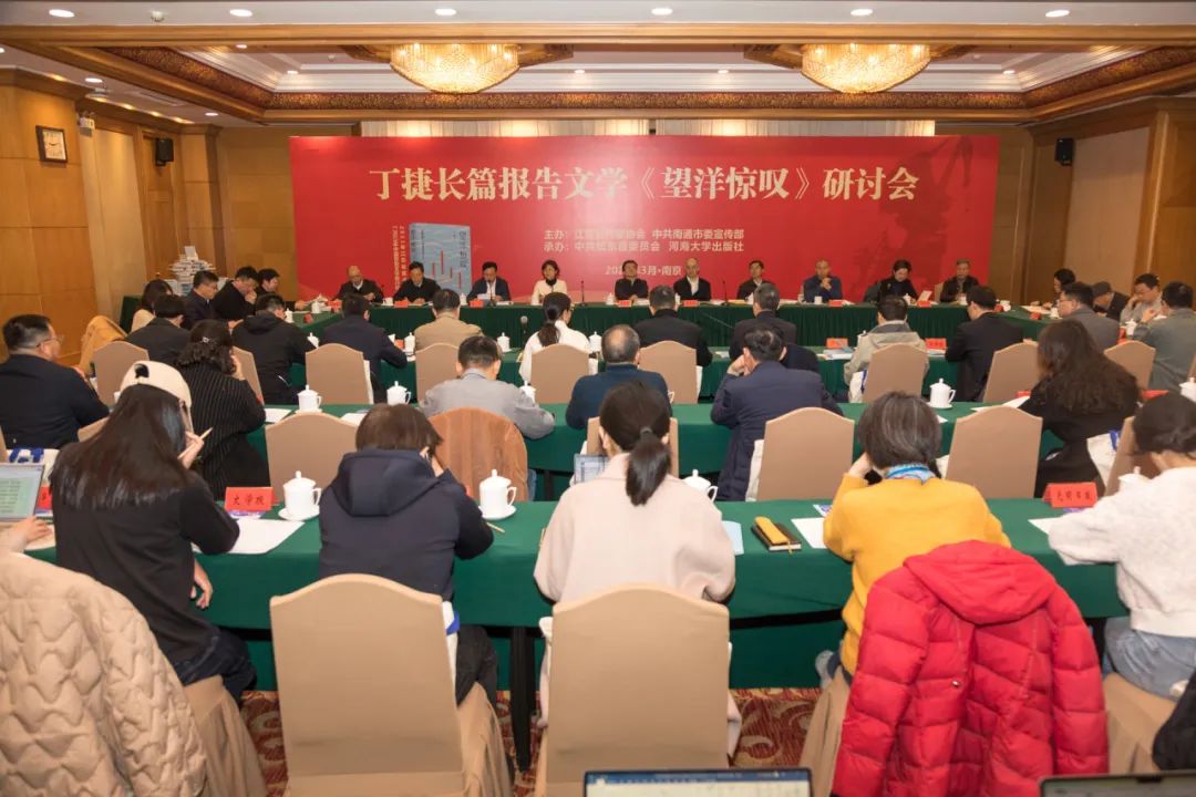 2024年3月17日,丁捷长篇报告文学《望洋惊叹》研讨会在南京举行。会议由省作家协会、南通市委宣传部主办,中国作协党组成员、书记处书记、副主席吴义勤,全国政协文史委副主任、中国作协副主席阎晶明,江苏国际文化交流中心理事长、省政协原副主席罗一民,省委宣传部副部长徐宁,中国作协副主席、省作协主席毕飞宇,省作协党组书记、书记处第一书记、副主席郑焱,南通市委常委、宣传部部长陈冬梅,市政协副主席、如东县委书记陈慧宇,省委宣传部原部务委员、省出版协会理事长刘海泉,及十余位省内外专家学者出席会议。开幕式和研讨分别由郑焱和省作协副主席、省文艺评论家主席汪政主持。