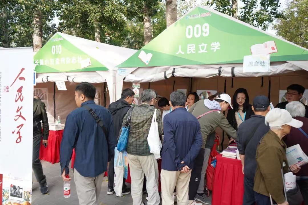 三天里,聚集在《人民文学》摊位前的读者络绎不绝:游客排着队将印章盖在扉页、烫金笺上珍藏,展位上的刊物往往刚摆上不久便销售一空,购书的读者总会感慨于附赠书袋的贴心服务与四季书签的制作精良,在朋友圈、微博、小红书、抖音等各大新媒体平台用户的活动晒图中,《人民文学》的身影频频出现。