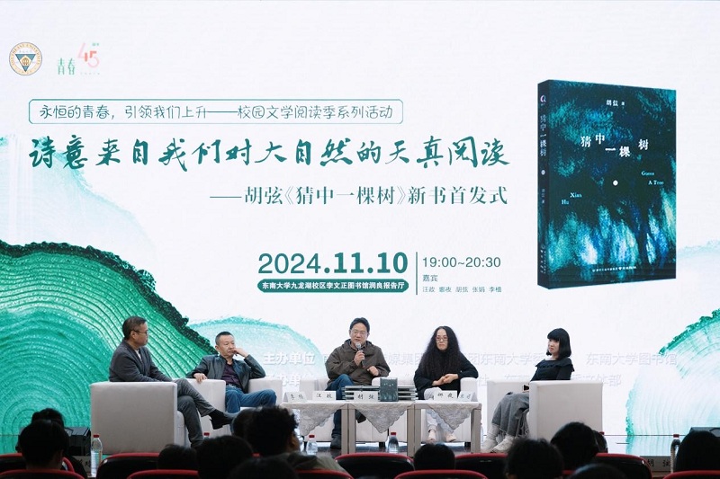 近日,由南京出版传媒集团、共青团东南大学委员会、东南大学图书馆主办,南京出版社、《青春》杂志社、东南大学团委文体部承办的“诗意来自我们对大自然的天真阅读——胡弦《猜中一棵树》新书首发式”在东南大学举办。该活动是《青春》创刊45周年系列活动之一。