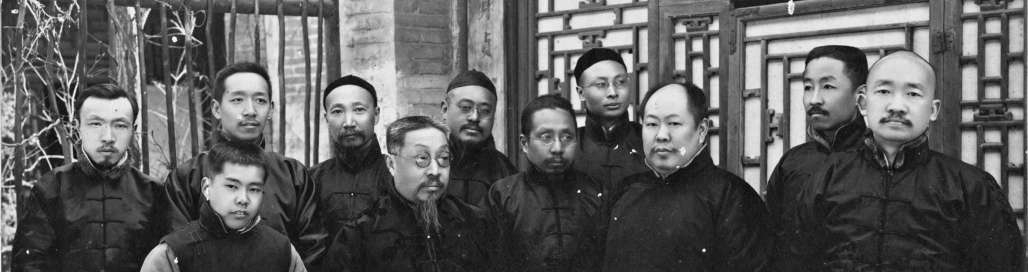 1917年春,姚茫父同年好友陈叔通辞去代议员职务,将离京南下,行前至莲花寺雅集并留影。照片从右至左,前排:刘希涛、姚茫父、陈汉第、陈叔通、姚二公子鋆;后排:孙伯恒、汤定之、邵章、周大烈、林宰平、陈师曾。(照片原件由香港许礼平先生藏)