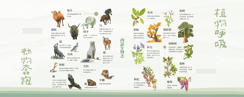 《植物呼吸,动物奔跑——西部生物志》以个人化的文学散文形式,深入描绘了西部尤其是新疆、西藏、甘肃等地60种动植物的生命故事。作品不仅介绍了这些生物的自然属性,更深入挖掘了其历史渊源、文化象征及与人类交织的复杂关系。书中大量生动细节展现了西部生物在极端环境下的生存智慧,如植物在风雨中的固守、动物在凛冽中的奔徙,从而揭示出它们作为“大地之子”与人类同行的深层价值。