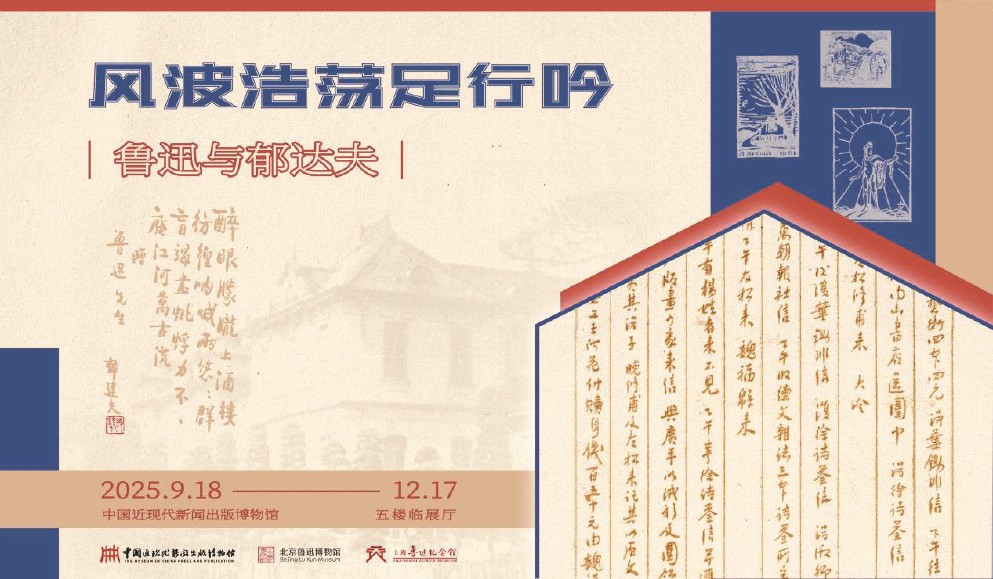 今年是中国人民抗日战争暨世界反法西斯战争胜利80周年,也是烈士郁达夫逝世80周年。中国近现代新闻出版博物馆携手北京鲁迅博物馆、上海鲁迅纪念馆,将于9月18日推出展览“风波浩荡足行吟——鲁迅与郁达夫”,以鲁迅、郁达夫在外求学、北京相识、上海重聚、人生晚景为时间节点,以54件/组珍贵信物为经纬,勾勒两位革命文学家的知交图卷,礼赞这段文学史上的友谊佳话。