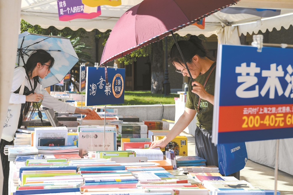 “每次‘淘书乐’旧书市集扎根所在地文化基因,都会策划相应的小型展览或推出相关展陈,希望市集与地标擦出更多有意思的火花。”上海图书有限公司副总经理程犁告诉记者,“淘书乐”旧书市集不断迭代升级,力求提升读者体验和服务水平。无论是休闲区域的“吃咖啡”,还是以校区建筑群为元素定制的藏书票和套色纪念图章,都是因地制宜的书香礼物,让逛市集的人们更有获得感,向读者传递“旧书流通、阅读循环、人际交流、文化传播”的理念,也告诉更多人——阅读可以很时尚,历史可以很亲切,古老校园可以很“好玩”。