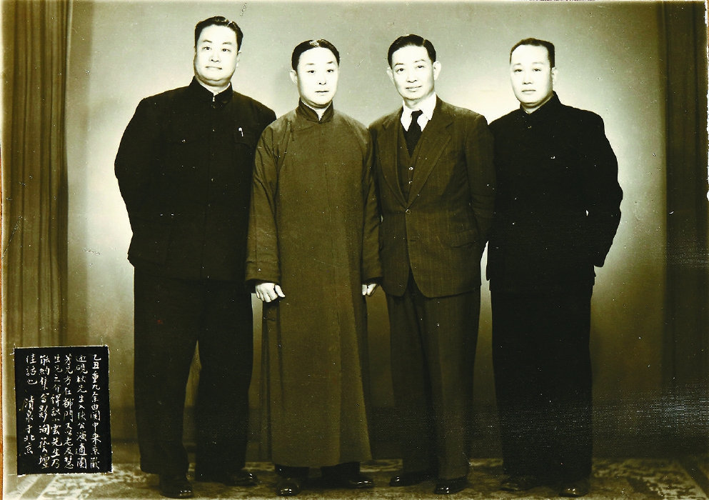 如今传世有一张1949年北京京剧界的大合影,时间为“中华民国三十八年六月廿八日”,题为“北平市国剧公会欢迎全国文艺代表暨平剧院诸同志合影”,也就是梅兰芳等人回到北京两天后,国剧公会为他们以及延安平剧院的同仁举行的欢迎仪式,地点可能是在樱桃斜街的梨园新馆。梅兰芳、周信芳身着西装,坐于身着长袍的萧长华左右,北京京剧界参与欢迎仪式的有谭小培、谭富英、李少春、韩世昌、徐兰沅、姚玉芙、叶盛章、叶盛兰、叶盛长、梁小鸾、许姬传、白登云等人,延安平剧院出席的有阿甲、马少波、罗合如等。照片上的人物一目了然,北京国剧公会的人多穿长袍,少数如梅、周及叶氏兄弟穿西装,延安平剧院则无一例外都穿着八路军军装,纪律严整。在场的很多人可能并没有意识到,一个崭新的时代即将到来。《北行琐记》也没有提到这一天的活动,但这张照片却有着划时代的意义。
