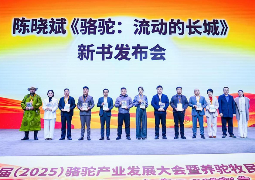 10月22日至24日,在甘肃省敦煌市举办的全国“第十届(2025)骆驼产业发展大会”上,作家陈晓斌的新作《骆驼:流动的长城》正式发布。这部由敦煌文艺出版社出版发行的作品,全书三十万字,是国内首部纪实性讲述骆驼故事的著作,也是中国首部融合文学、历史、科普维度的骆驼主题书籍。