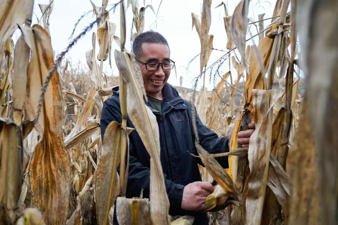 过去,坑洼狭窄的土路进不了收割机,要么是他和年迈的父母一穗一穗地掰,要么靠小型机械缓慢作业。“以前收玉米要折腾好多天,现在一两个小时就干完了。种地也不耽误我读书、创作。”曹兵说。