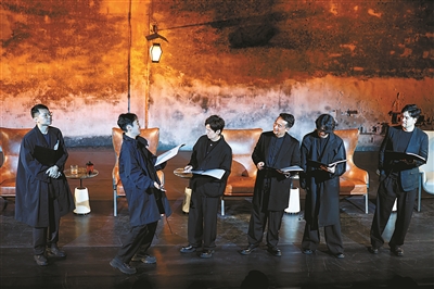 《农庄馆客人》是一部以二战末期为时代背景,探讨科学伦理与人道主义危机的严肃作品,在本届戏剧节进行剧本围读时引发关注。观众在飞机轰鸣声、现场演奏营造的氛围中,跟随演员亦庄亦谐的表演进入剧情,带有思辨意味的扎实文本释放出强大的能量。