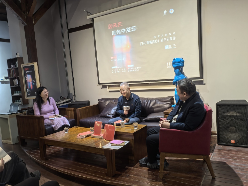 王干坦言特别喜欢青岛,与青岛渊源颇深,2018年曾来青岛参与由中国作协《小说选刊》、中国小说学会、《人民日报》海外网联合主办,青岛市作家协会承办的“改革开放四十周年中国小说论坛暨最有影响力小说评选活动”,评选出40部最具影响力的改革开放题材小说,他自认为是“文学活动的收官之作”,展现了文学与时代变革的关系。前两年王干到青岛做过《尘界与天界:汪曾祺十二讲》《人间食单》的分享会,“每本书都跟青岛产生密切的互动和交流。今天,我带着刚出炉的热气腾腾的新书,特别邀请林社长过来,在良友书坊举办‘青春诗抄’首场分享会,我觉得是特别有意义的。”