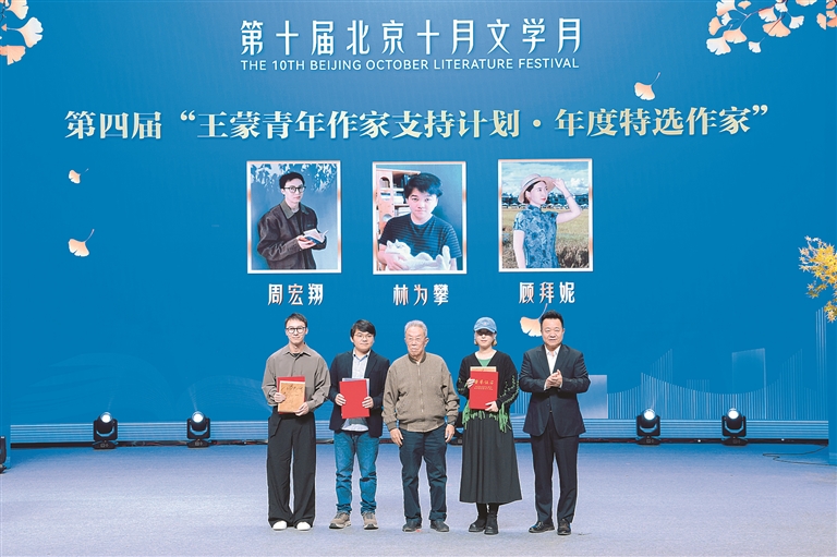 顾拜妮在入选第四届“王蒙青年作家支持计划·年度特选作家”时,与王蒙合影。