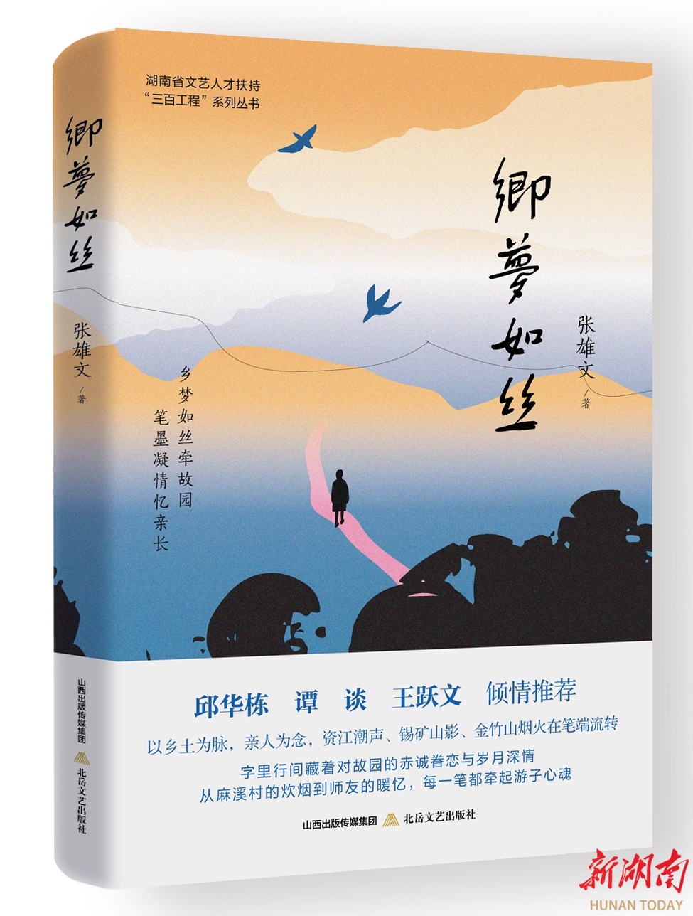 近日,张雄文新书《乡梦如丝》由北岳文艺出版社正式出版发行。该书为作者最新散文集,系湖南省文艺人才扶持“三百工程”入选作品。全书凝眸老去的时光深处,以乡土与亲人为主线,或回望故园,或感怀双亲,或忆念师友。字里行间藏着对故园的赤诚眷恋与岁月深情。作者文风或如山间小道素朴清新,或如万顷汪洋浩瀚恣肆,笔力遒劲而老到,思虑沉郁而睿智。中国作协党组成员、书记处书记、副主席邱华栋、中国作协原副主席谭谈、中国作协主席团委员、湖南省作协原主席王跃文倾情推荐。谭谈并撰写序言,王跃文并题写书名。