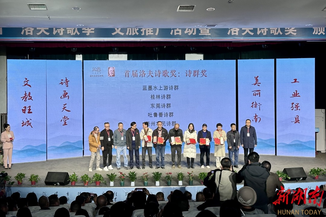 11月30日上午,首届“洛夫诗歌季”文旅推广活动暨“洛夫诗歌奖”颁奖典礼在衡南县搏广影院举行。活动以“美丽衡南,诗画天堂”为主题,吸引了中国诗歌学会、湖南省作家协会众多代表及全国近百位诗人学者参与,通过颁奖典礼、文旅推介与艺术展演等多元形式,共同奏响诗与远方交融的华彩乐章。