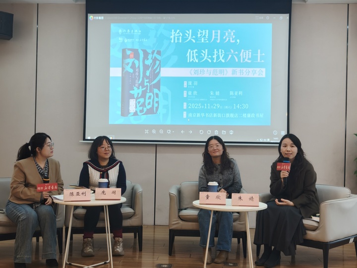 11月29日,青年作家庞羽携其最新小说集《刘珍与范明》做客南京市新华书店新街口旗舰店,以“抬头望月亮,低头找六便士”为主题,与《扬子江文学评论》编辑部主任童欣、作家朱婧展开对谈。活动由该书责编陈亚利主持,现场围绕90后婚恋观、女性成长、日常生活书写等话题展开深入交流。
