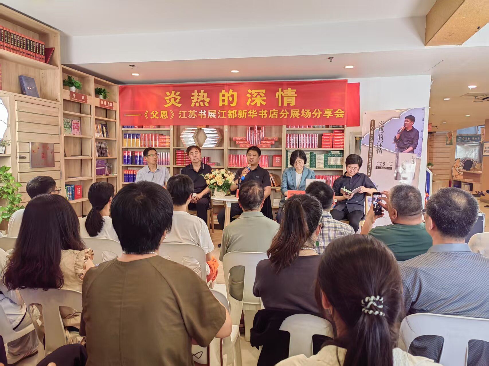 7月5日下午,扬州市作协主席周荣池携长篇散文力作《父恩》,到江苏书展江都新华书店分展场现场,分享创作经验。