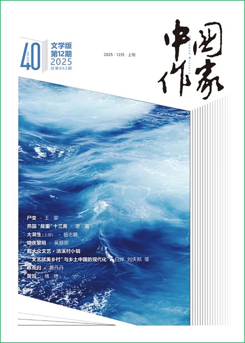 新时代文学持续繁荣发展。10月26日,为积极贯彻落实党的二十届四中全会精神,《中国作家》杂志社召开“文艺赋美乡村与乡土中国的现代化”座谈会,白烨、刘庆邦等评论家作家围绕《“文艺赋美乡村”工作方案(2025-2027年)》,探讨文艺在乡村振兴中的责任使命与创新路径,本期“当代文艺前沿”刊发主要内容,敬请关注。文学版继续刊发王蒙、谢冕先生的专栏,本期我们还推出杨志鹏长篇小说《大潮生(上部)》,这是一部书写青岛百年历史的优秀作品。“青年作家小辑”中黄丹丹《咏而归》、褚婷《蟹奴》,“散文信箱”中王涛《大地的孩子》,都值得细细品读。