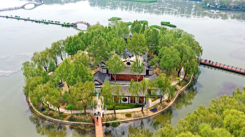 坐落于白洋淀荷花大观园的荷花淀派文学馆(无人机照片)。(雄安新区宣传网信局供图)