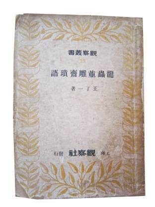 王力(笔名王了一)先生的散文集《龙虫并雕斋琐语》,于1949年由上海观察社出版后,多年没有再版。上世纪80年代,中国社会科学出版社发现这本学者散文的价值,雇人从旧版抄录,印行新的版本。新版出版后,王先生寄给作家刘绍棠一本——刘绍棠在上世纪50年代曾短期就读北京大学中文系,与先生有师生之谊。师生互赠著作,本来是学界文坛的平常事,不料今此从燕园寄出的书不平常。