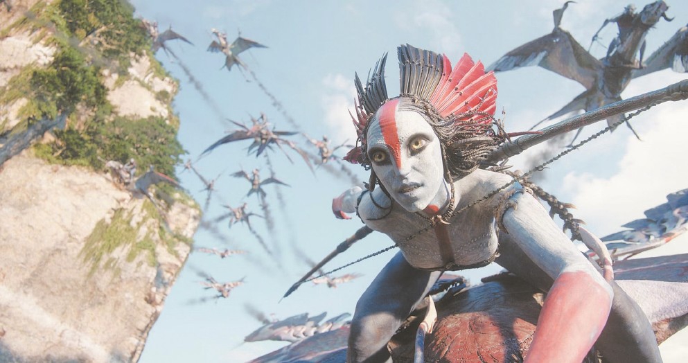 《阿凡达》系列的特点在于从高度符号化的寓言里延伸出视听奇观。片名“阿凡达”是奇幻设定下的人类进入潘多拉星球的“身体媒介”,这是看起来像原住民的躯壳。男主角经历和原住民共患难,认同了对方的文化和价值,他抛弃人的肉身,用阿凡达的形态栖居到另一种文明中。在2009年首映的潘多拉星球上,戴着3D眼镜的观众看到不同于工业文明的另一种信仰、另一种生态,看到发达技术和资本扩张之外的另一种可能,也看到“影院体验”的全新可能。