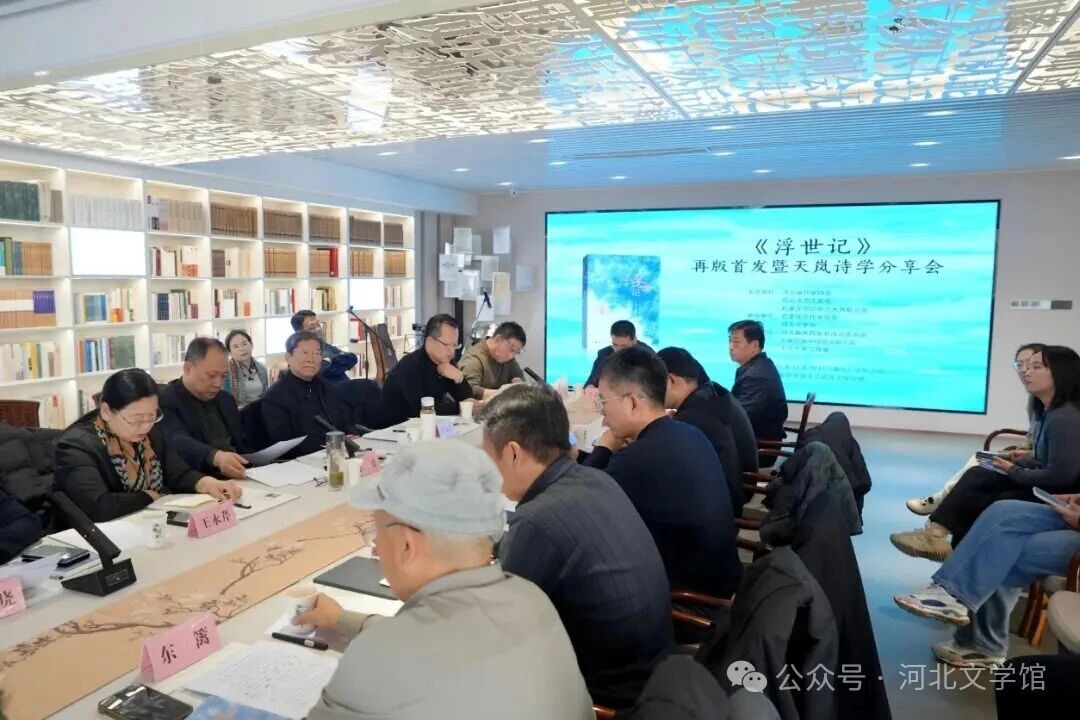 近日,由河北省作家协会、花山文艺出版社、石家庄市文联主办,石家庄市作家协会、河北文学馆承办的“《浮世记》再版首发暨天岚诗学分享会”在河北文学馆举行。河北省作家协会一级巡视员张勇,石家庄学院院长王永芹,石家庄市委原常委、宣传部长孙万勇等领导嘉宾,李浩、李建周、崔立秋、刘波、东篱等专家学者,及作家诗人、文化界代表、媒体代表约50人共聚一堂,围绕诗人天岚诗集《浮世记》展开学术研讨与文本细读。