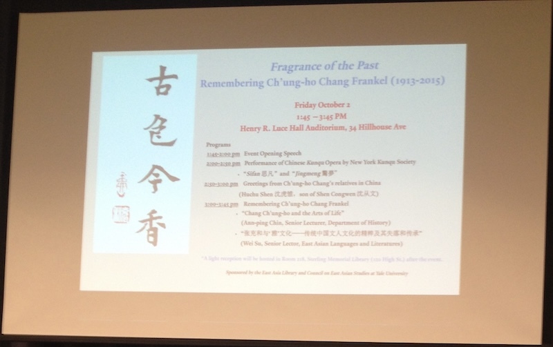 耶鲁大学张充和追思会屏幕上楷书“古色今香”