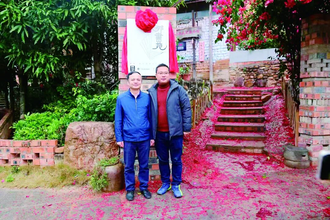2022年,石一宁(左)与钟世华在那书苑合影。钟世华 供图
